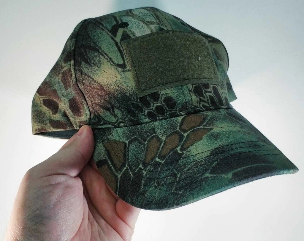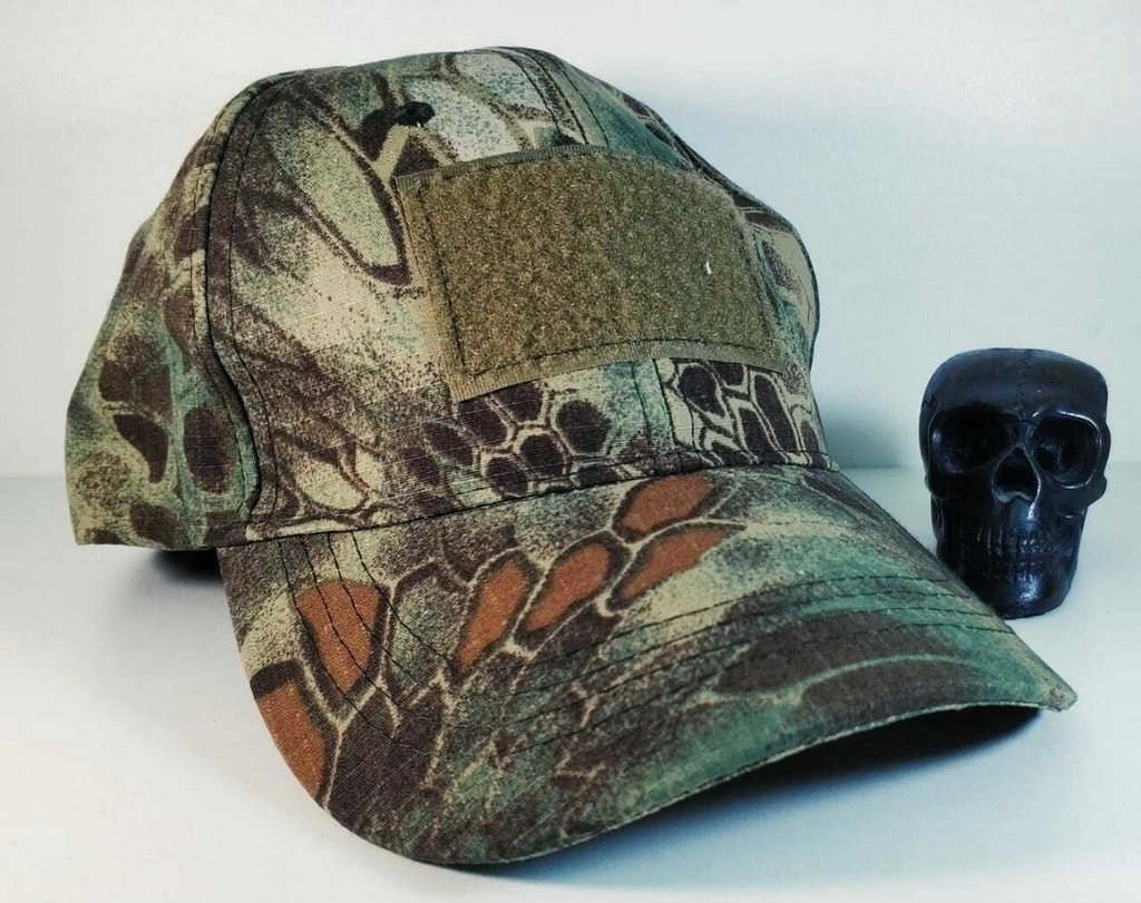 Belo, funcional, resistente, confortável e ao mesmo eficiente boné e acabamento em Riptop de alta qualidade com estampa camuflado "Green Python", um dos padrões que imita taticamente uma tonalidade de cobra Python, bela e mortal.