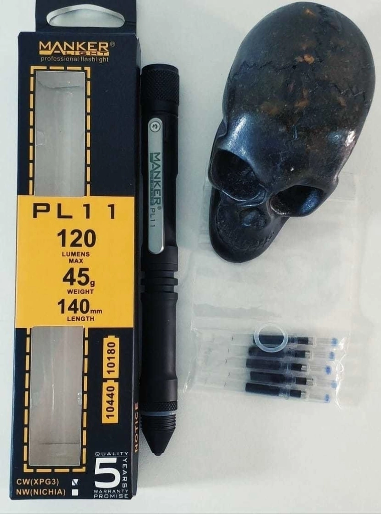 Bela, discreta, super funcional e ao mesmo tempo e letal caneta tática da Manker, Modelo Pl11. Caneta tática toda em alumínio aeronáutico de excelente acabamento e durabilidade com tom acetinado black, conferindo resistência extra contra corrosão. Produzida com materiais de extrema qualidade e com ponta protuberante para ser utilizada como meio contundente em situações de crise.