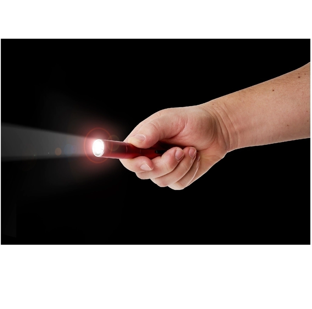 Lanterna da famosa Guard Dog, versão Pen Point (cor RED), super compacta, uma das mais potentes e econômica da categoria. Acompanha baterias AAA.