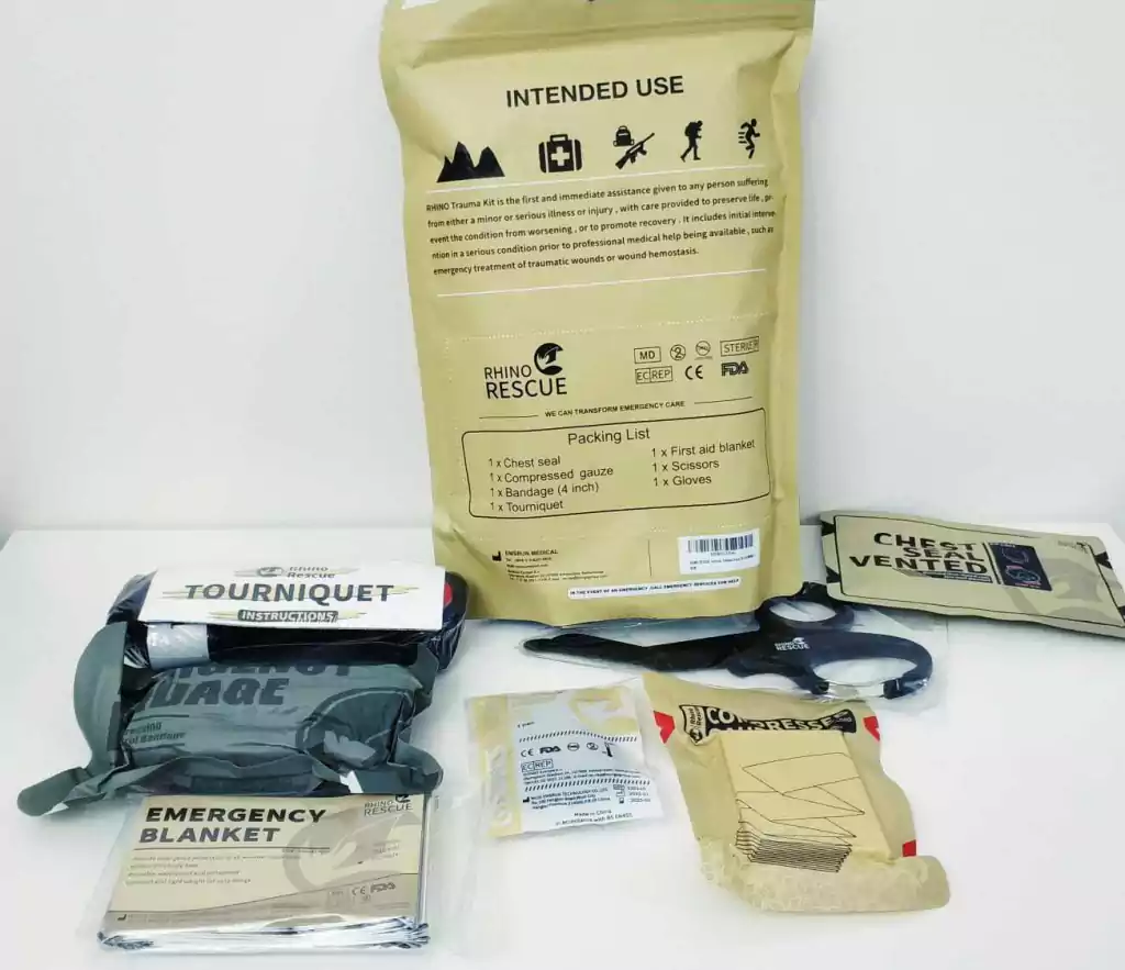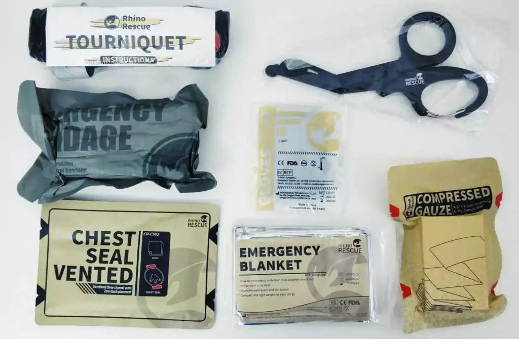 Kit inicial para equipamentos de primeiros socorros padrão IFAK/EDC, ultraleve e resistente da renomada Rhino Rescue. O kit possui diversos acessórios para iniciar seu KIT de primeiros socorros tático, com sete acessórios bem selecionados.